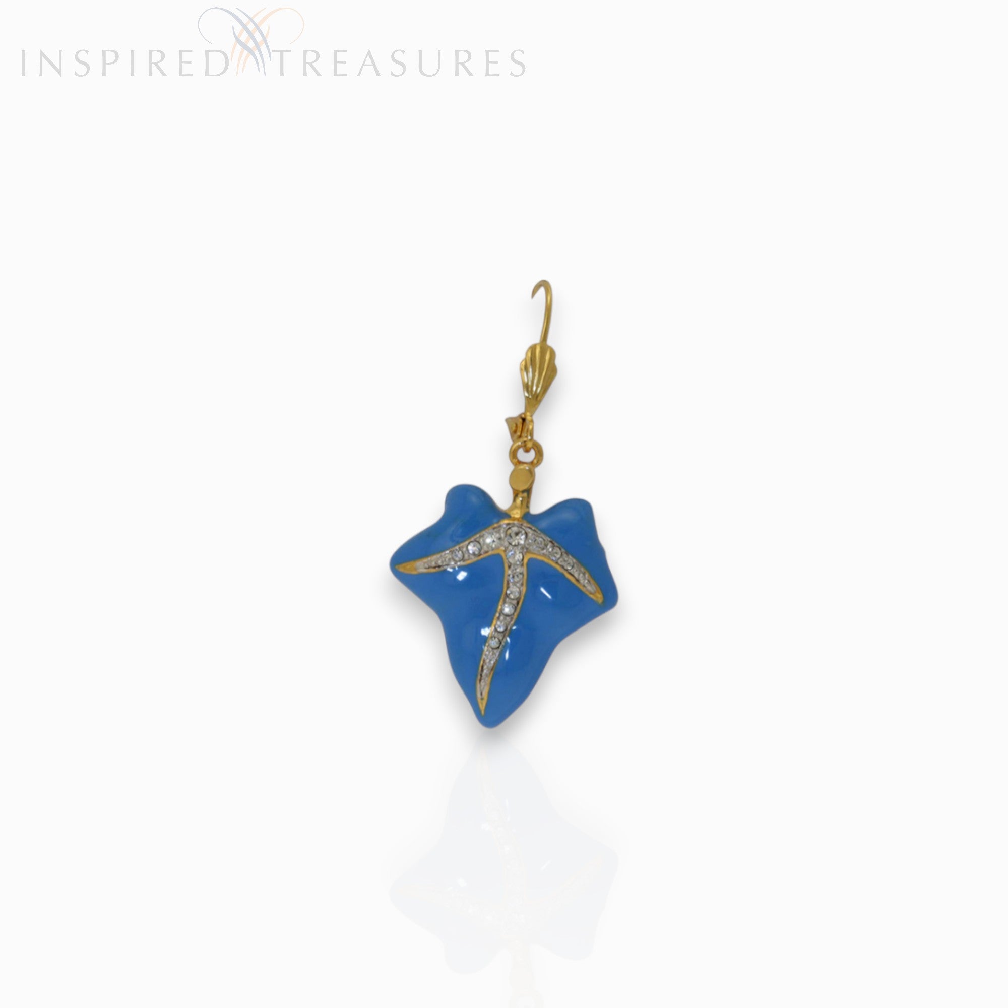 Ivy leaf range - this range owes its inspiration to a naturalistic botanical design, probably English, dating from 1845-1855. The earrings are gold-plated and hand-enamelled in a beautifully rich shade of blue.