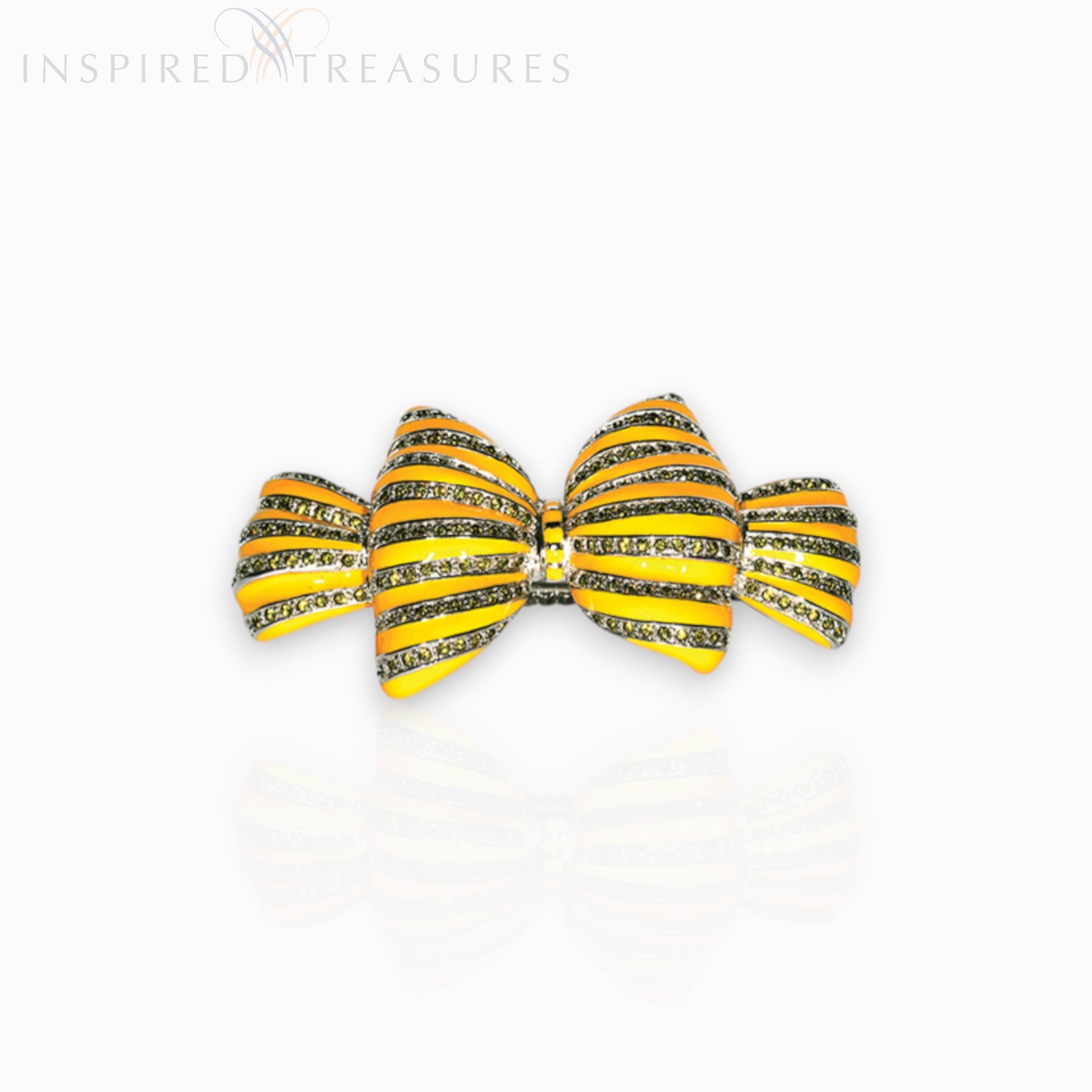 This hair clip is rhodium-plated, hand-enamelled and embellished with rows of bohemian crystals.