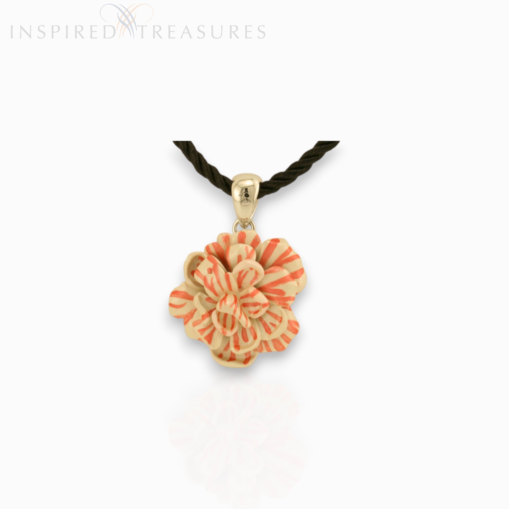 This pendant is based on the Dianthus caryophyllus- Commonly known as the clove pink. It has been cultivated for millennia, valued for its warm spicy fragrance. They are called pinks because of the frilly petal edges that appear to have been cut by pinking shears. This brooch is inspired by artwork by Caroline Maria Applebee (c.1799-1854)- Very little is known about Miss Applebee, like so many women artists of the time. She was an extremely talented amateur artist whose works went unpublished. Her paintings feature a large range of plants, including many more rare and exotic varieties of the day that would only survive under glass.