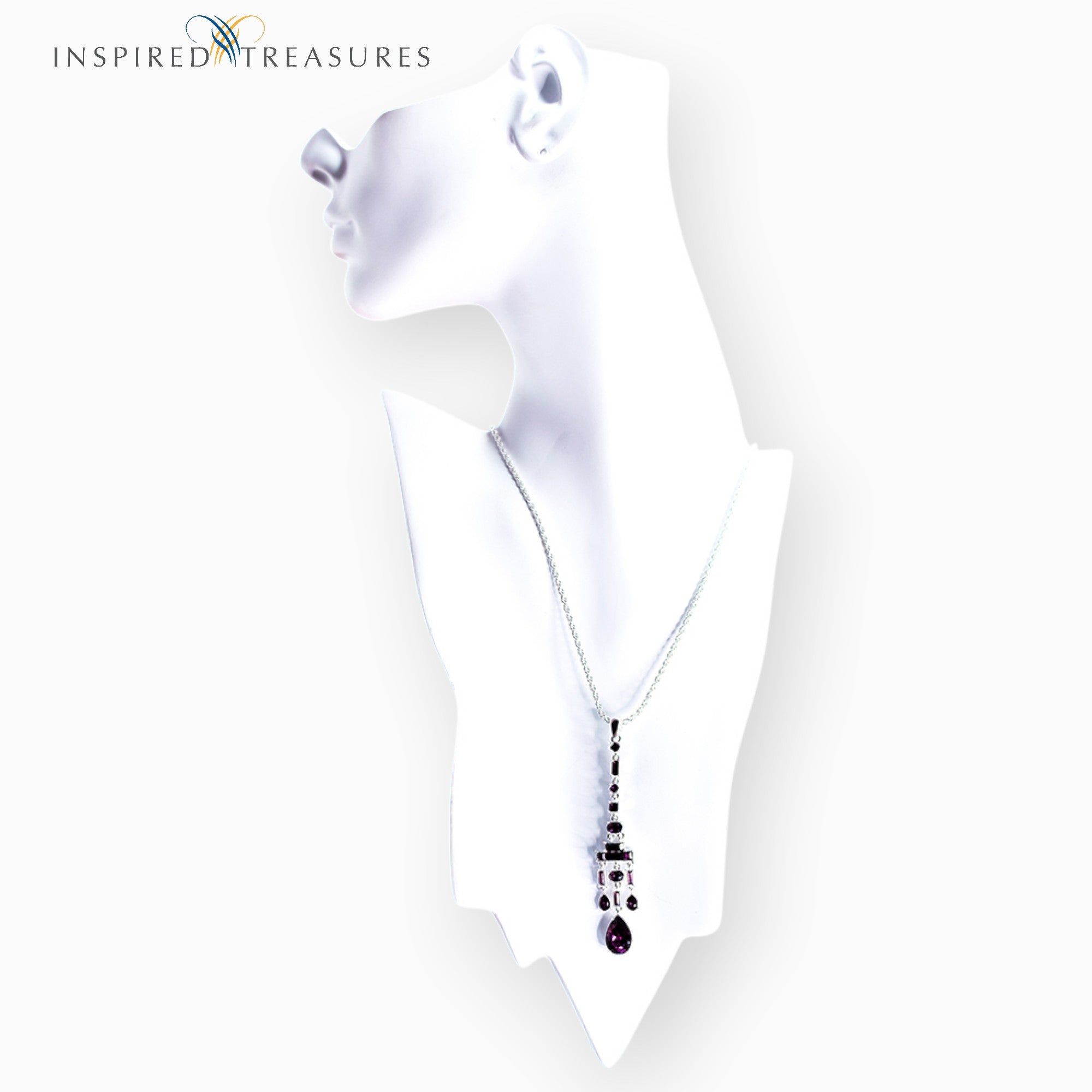 Inspired by earrings that feature every known cut of diamond. Queen Elizabeth the Queen Mother whilst Queen Consort had inherited them from a good friend, the Hon. Mrs Ronnie Greville in 1942. The Queen then gave them to her daughter, the then-Princess Elizabeth in 1947 as a wedding present. The princess could not wear them until she had her ears pierced, and when it was noticed that she had, women everywhere flocked to their doctors and jewellers to have their ears pierced as well! This pendant is silver-toned and adorned with many bohemian crystals.