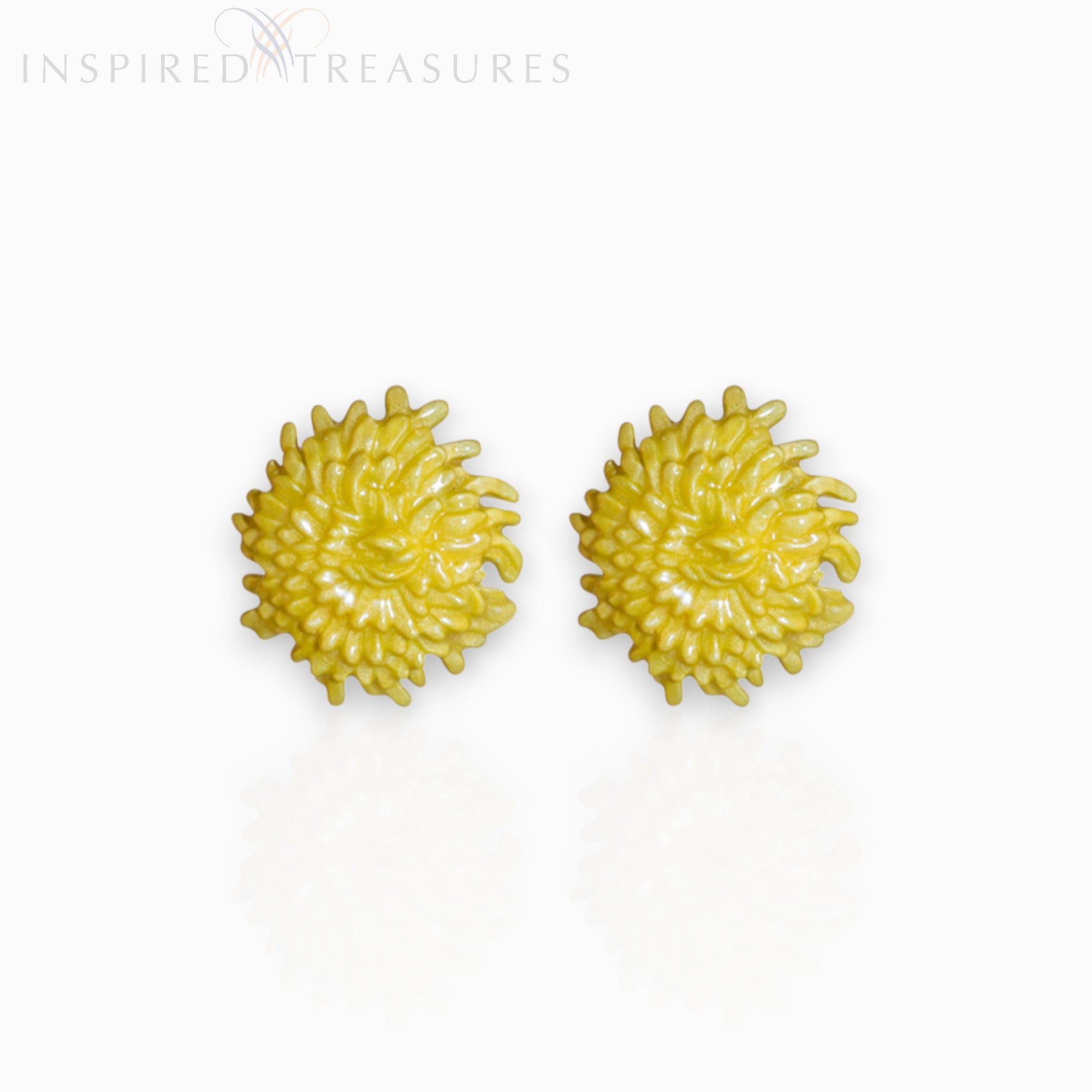 Introducing our exquisite earrings featuring the birth flower for November. These captivating pieces are a stunning addition to our collection of birth flower jewellery. Crafted with meticulous hand-enamelling and plated in rhodium, these elegant earrings beautifully showcase the delicate 3D form of the chrysanthemum, highlighting its abundant petals. Each earring measures 1.3cm by 1cm, offering a perfect size for everyday wear. These stud earrings come with secure lock backs. Complete your vibrant set by pairing these earrings with the matching necklace and brooch.