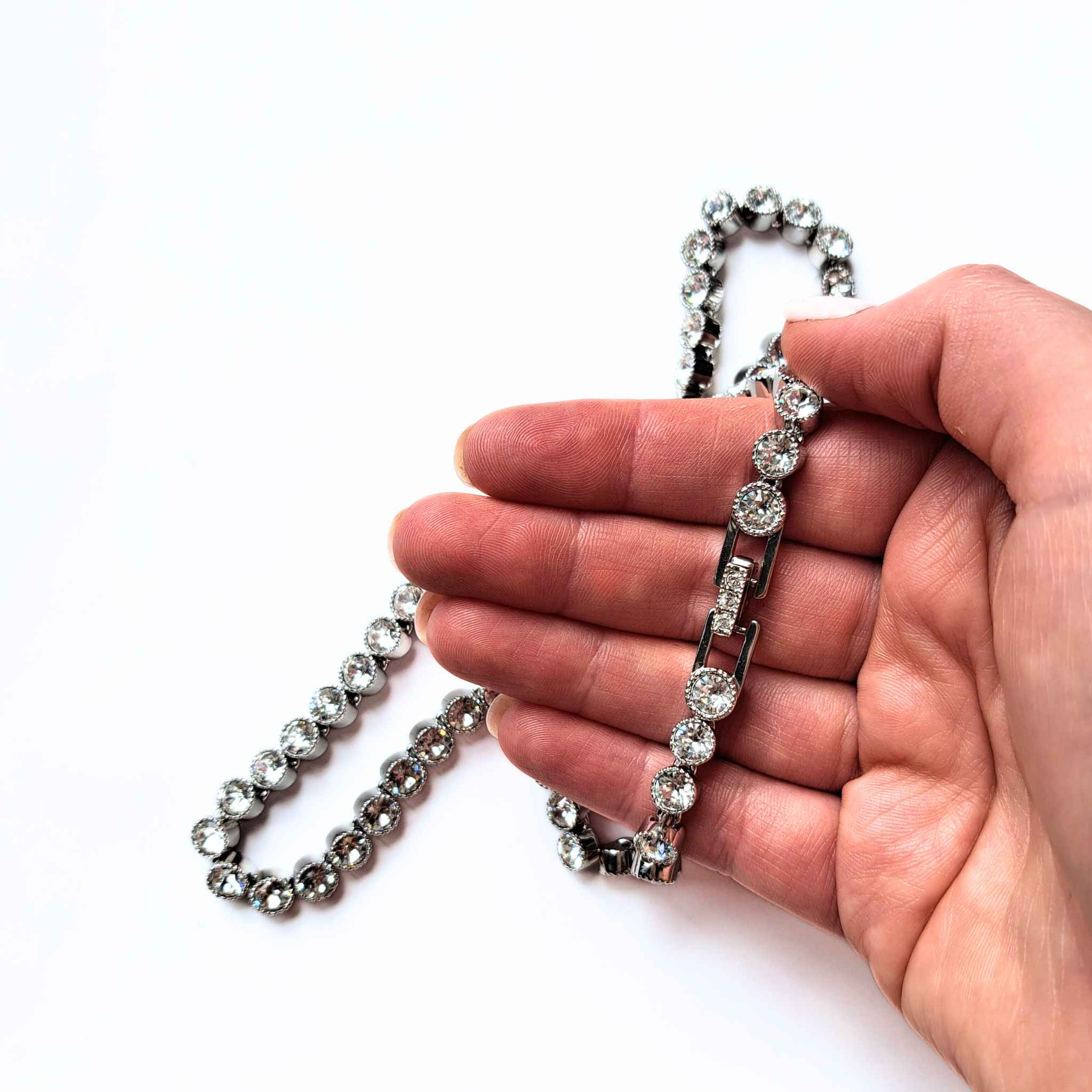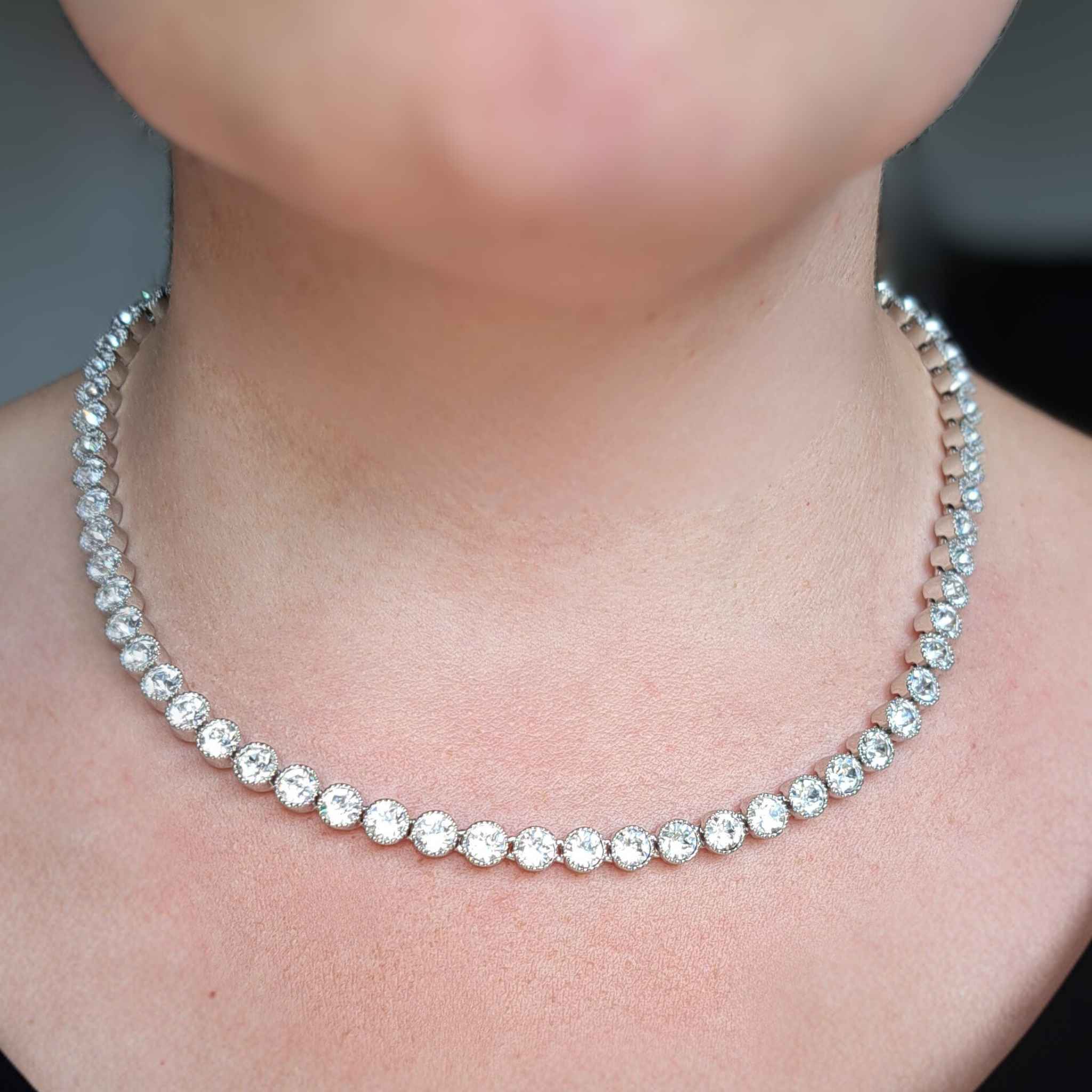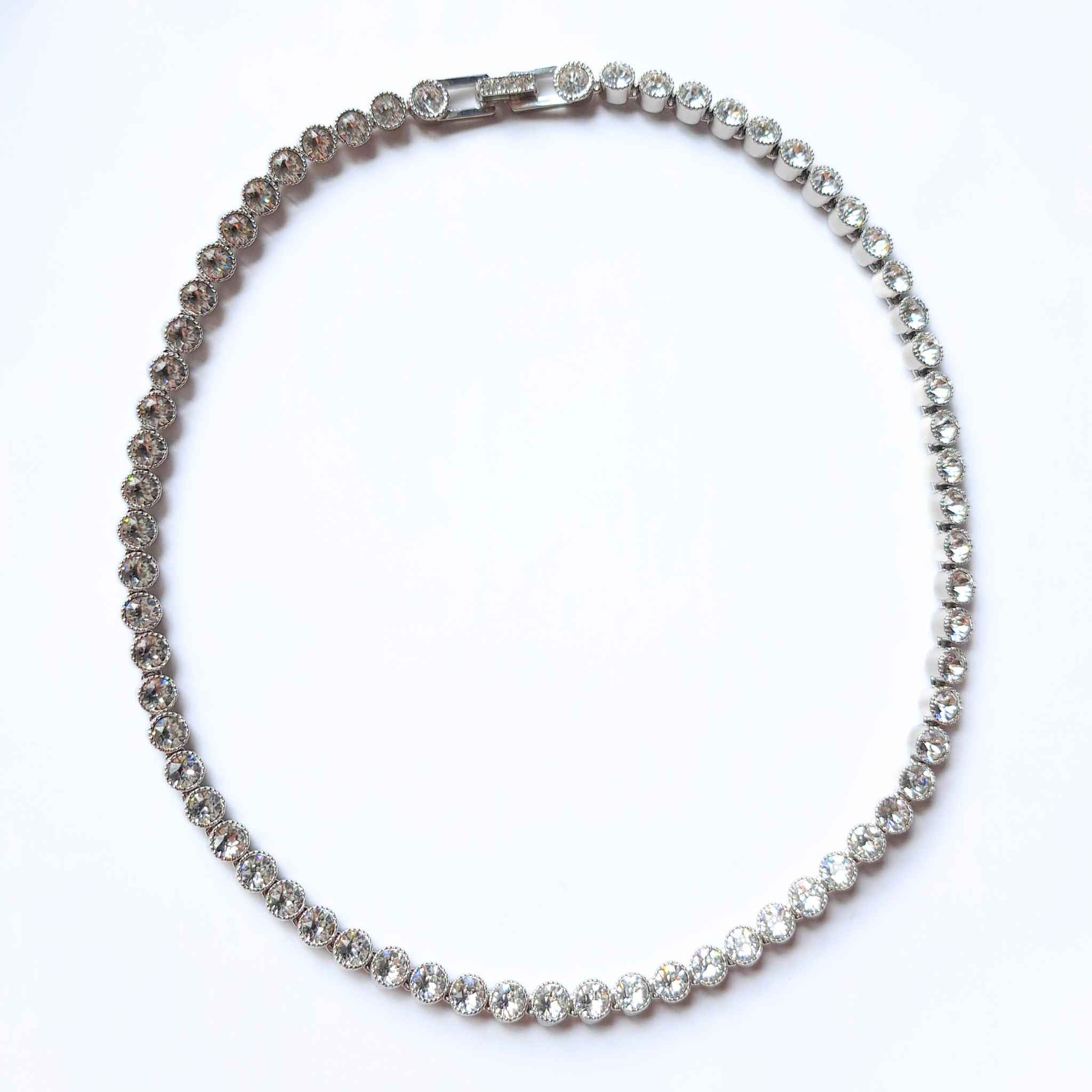 This is an elegant necklace featuring 70 bohemian crystals and a rhodium-plated design. The precision cut of each crystal ensures an extra special sparkle. For a complete glamorous look, pair it with our Crystal Tennis bracelet and earrings.