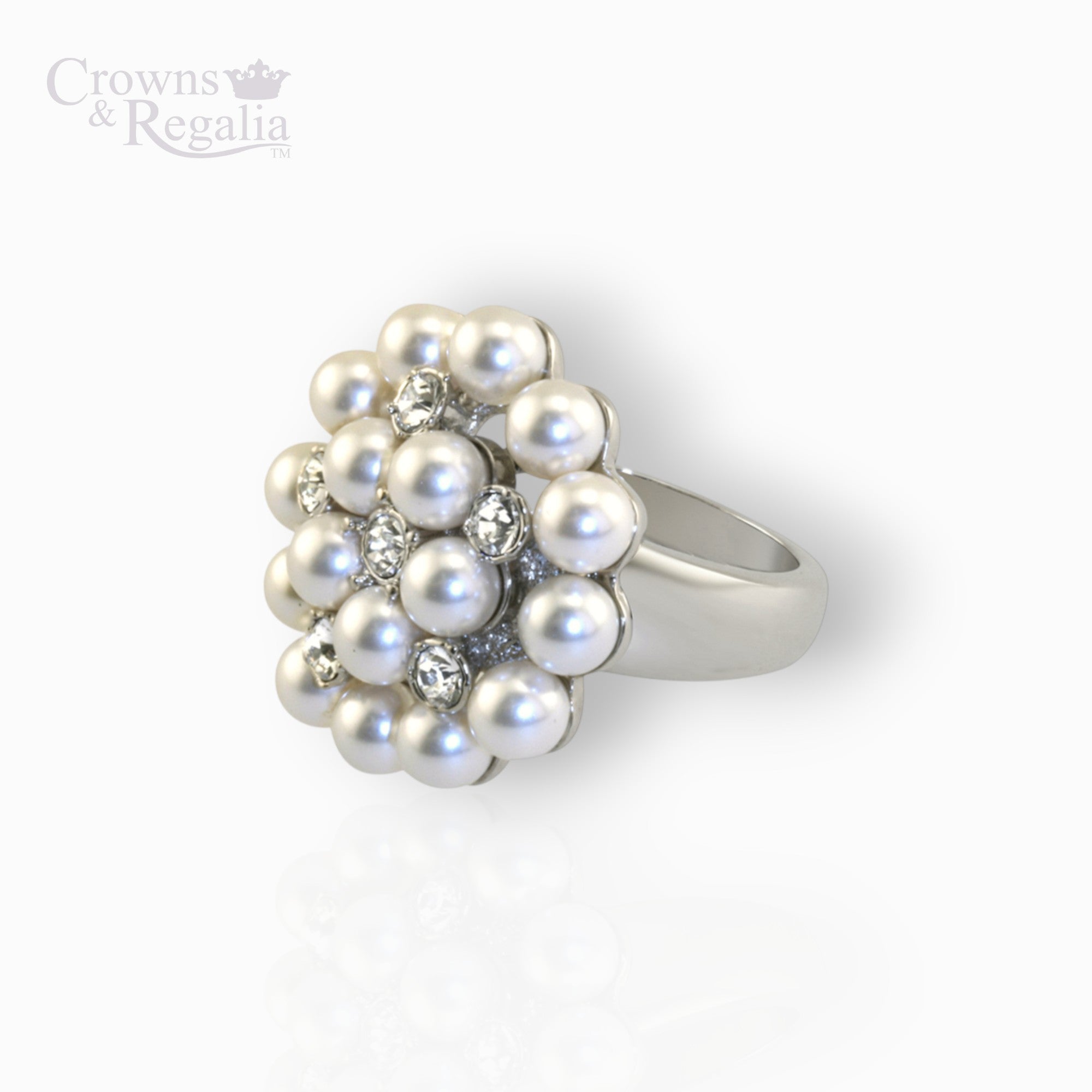This ring is inspired from a pair of diamond and pearl earrings given by "The Ladies of Devonshire" to Princess May of Teck in 1893. These were passed onto Queen Mary who gave them to The Queen in 1947 as a wedding present.