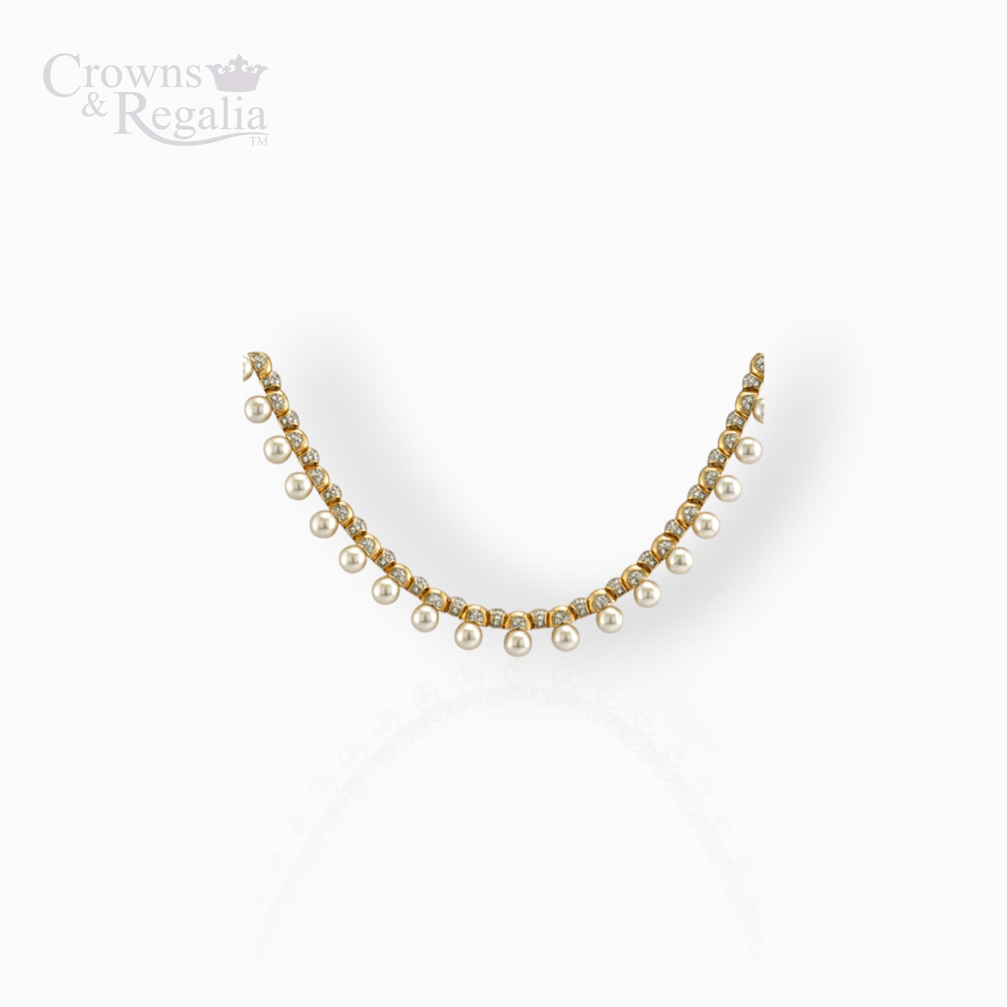 This Elizabethan-inspired gold-toned necklace features faux pearls and bohemian crystals.
