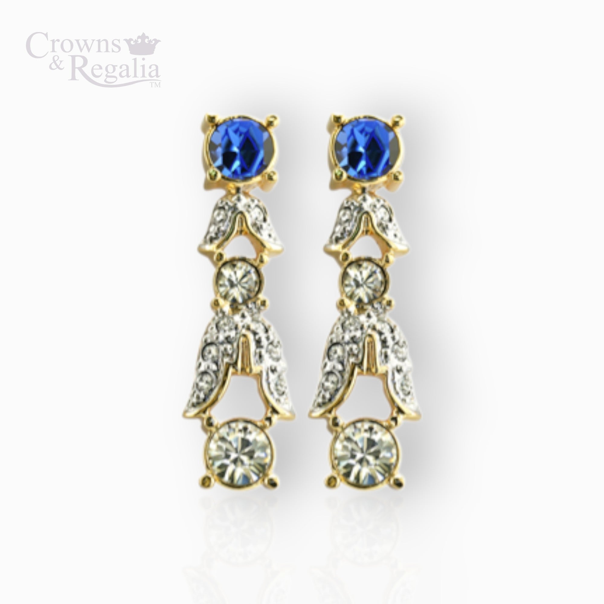 This set of jewellery is inspired by a parure of jewels consisting of a diadem, a necklace, a pair of earrings and two small and one large brooch, all set with Ceylon sapphires. It is believed they were originally worn by The Empress Josephine jewels and given to her daughter Queen Hortense of Holland. But mystery surrounds the jewels, they cannot be dated and it is not known who made them. It has even been suggested that they may once have belonged to Marie Antoinette. It is known that it was worn by Queen Marie-Amélie of France, who divided the set amongst her grandchildren as they married and it was last with Isabelle of Orleans until it was sold to the Louvre, Paris.