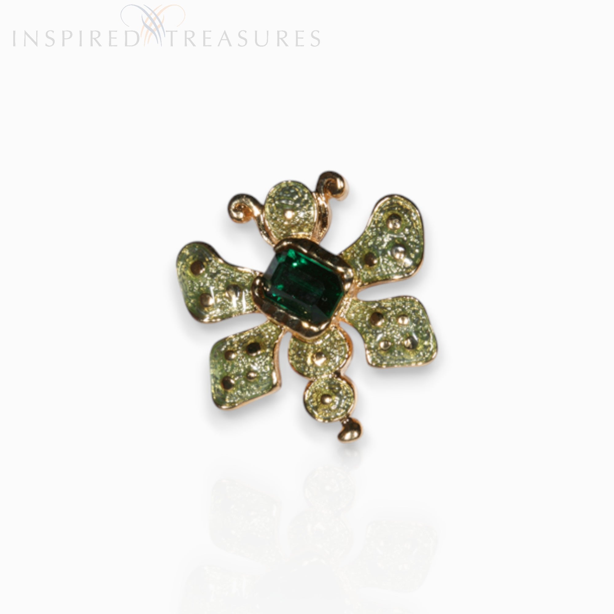 This range of simple but distinctive pins, in green, blue, orange and red enamel with Bohemian Crystals Bohemian Crystals, are taken from an element of a Spanish bodice ornament from 1700.