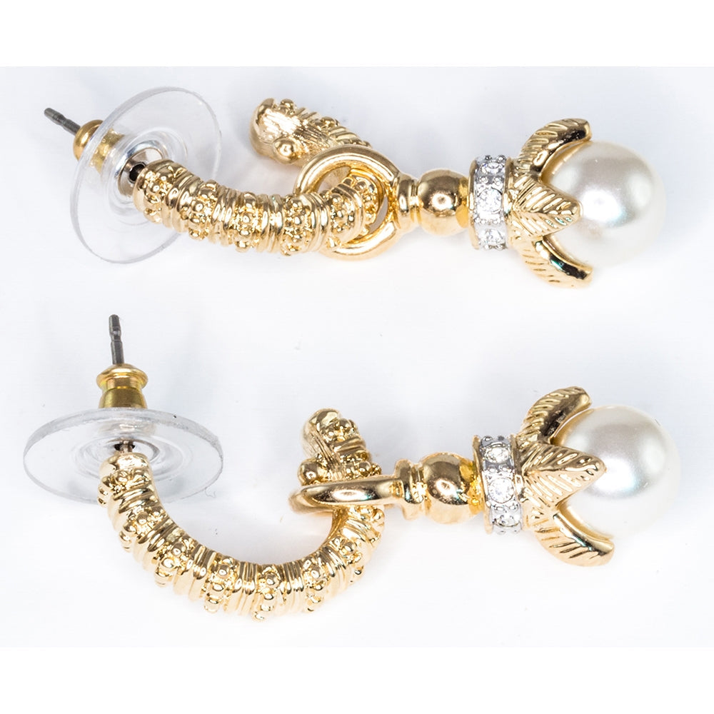 Hooped Earrings with Cream Faux Pearl: A variation on the haute couture theme, these sumptuous earrings with faux pearls in a pendant style is also set with Bohemian Crystals.