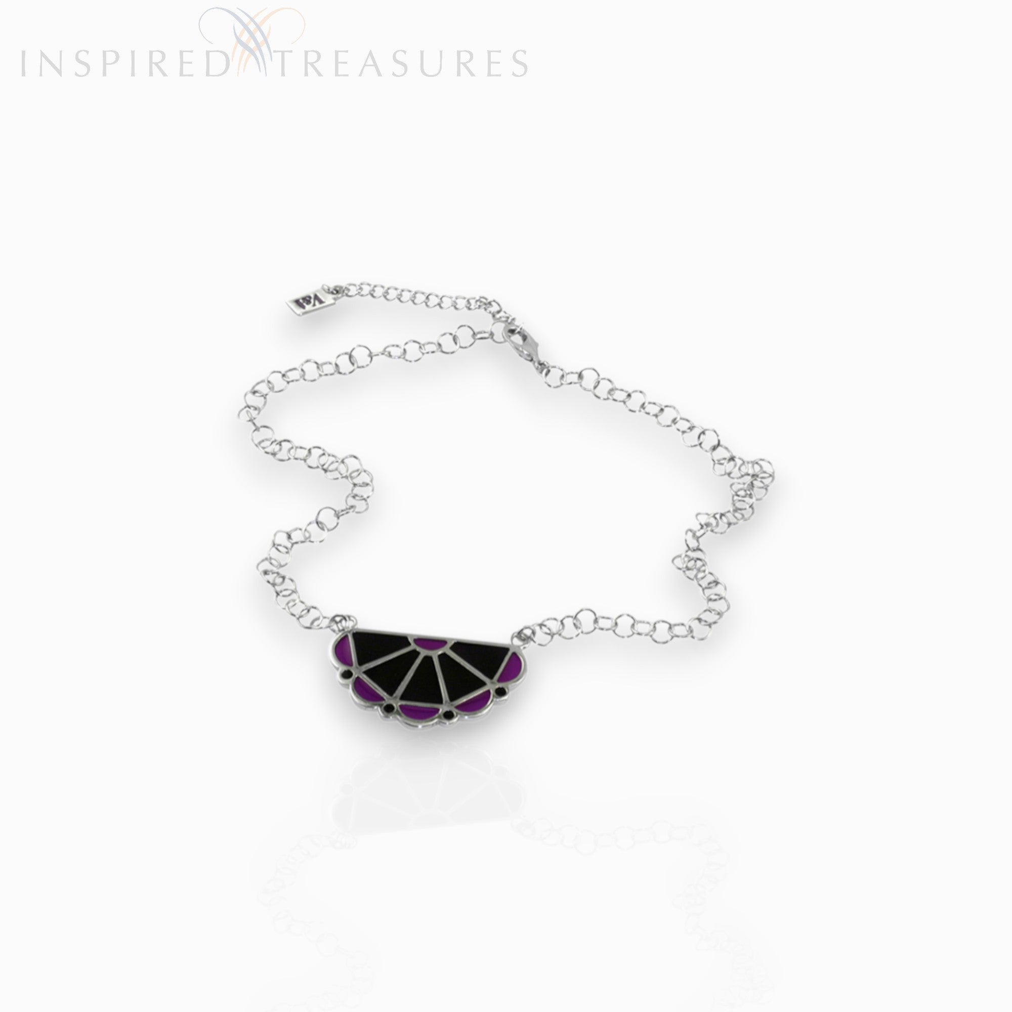 This lattice necklace design is inspired by 19th-century marble window screens. This necklace echoes the intricacy of the hand-carving involved, and the transparent enamel evokes a delicate window pattern, suggesting a whole world beyond.