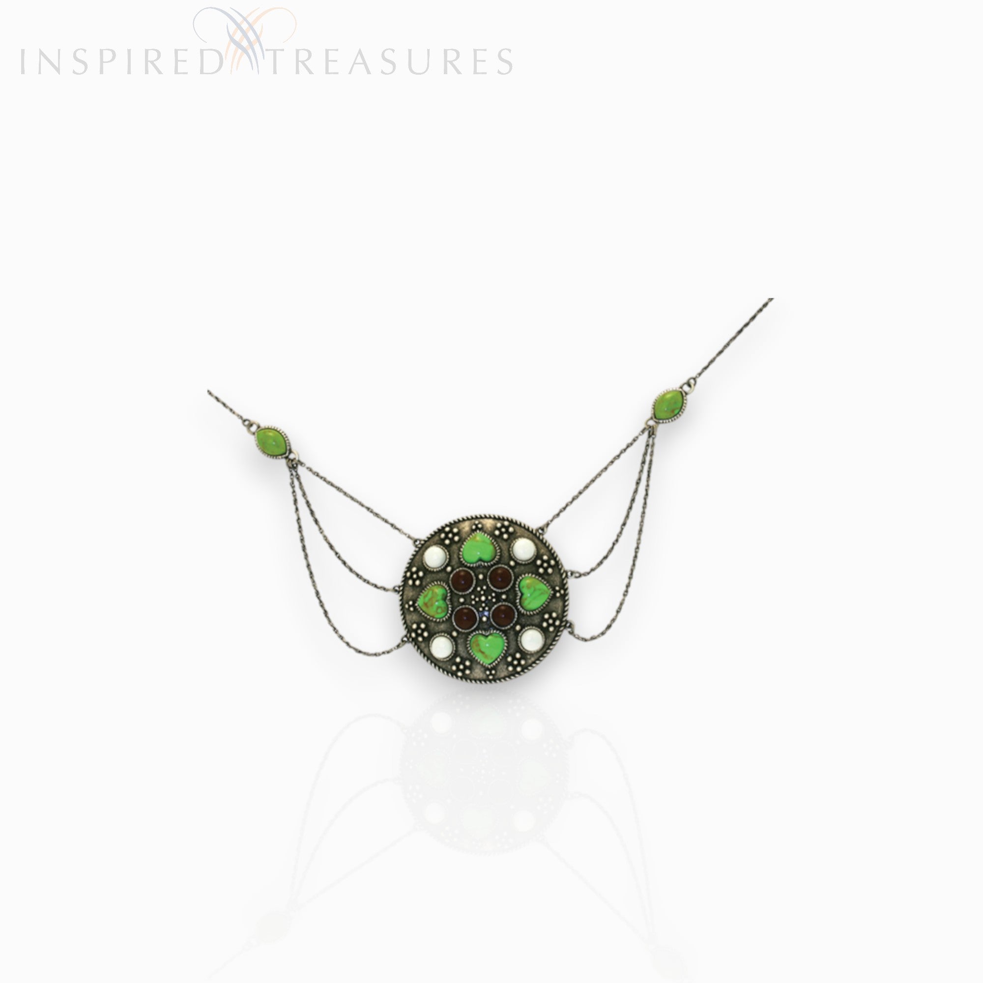 This 'girdle' necklace recalls a beautiful 1903 pendant designed by May Morris, the younger daughter of William Morris. They come in an antiqued silver-plated finish.