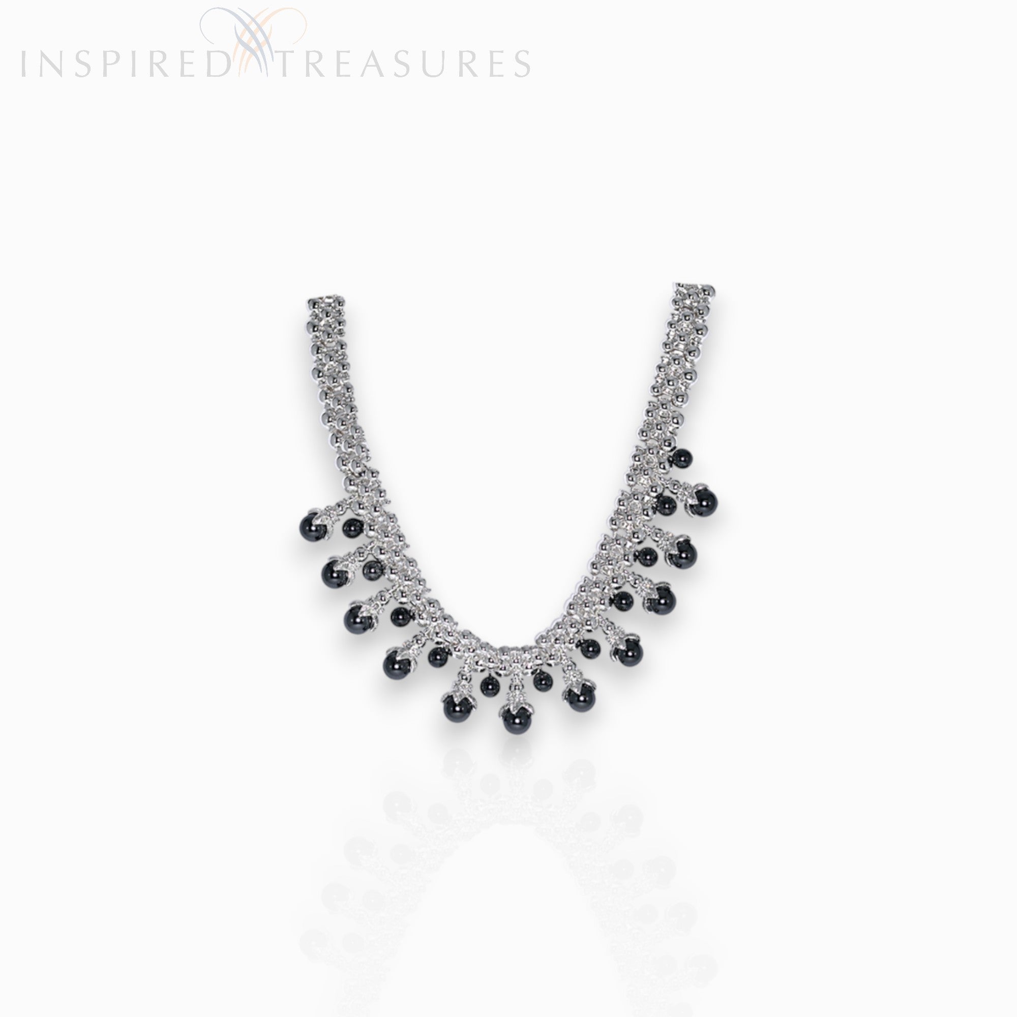 Multiple Grey Faux Pearl Collar: A variation on the haute couture theme, this sumptuous collar necklace of multiple pearls in a pendant style is also set with Bohemian Crystals.
