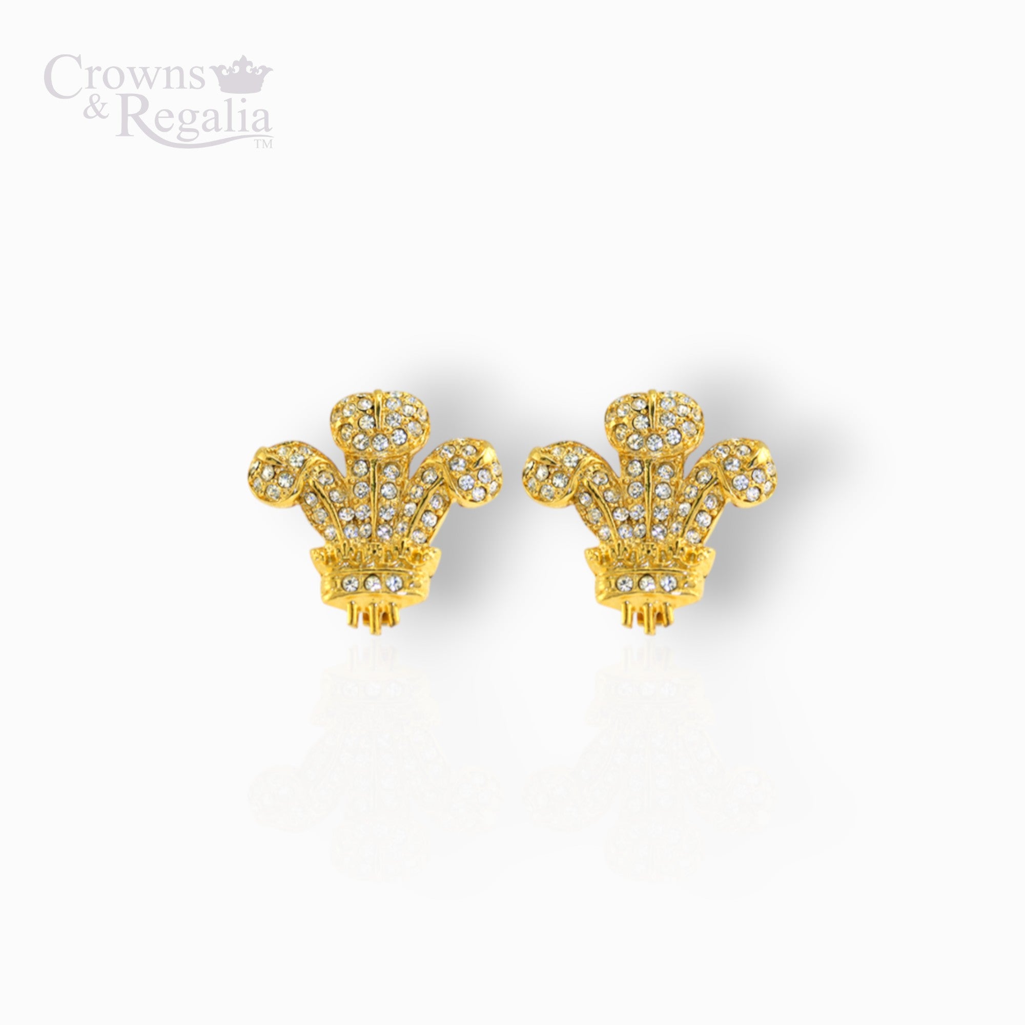 These elegant clip-on earrings feature the iconic Prince of Wales feathers in a timeless and classic design.