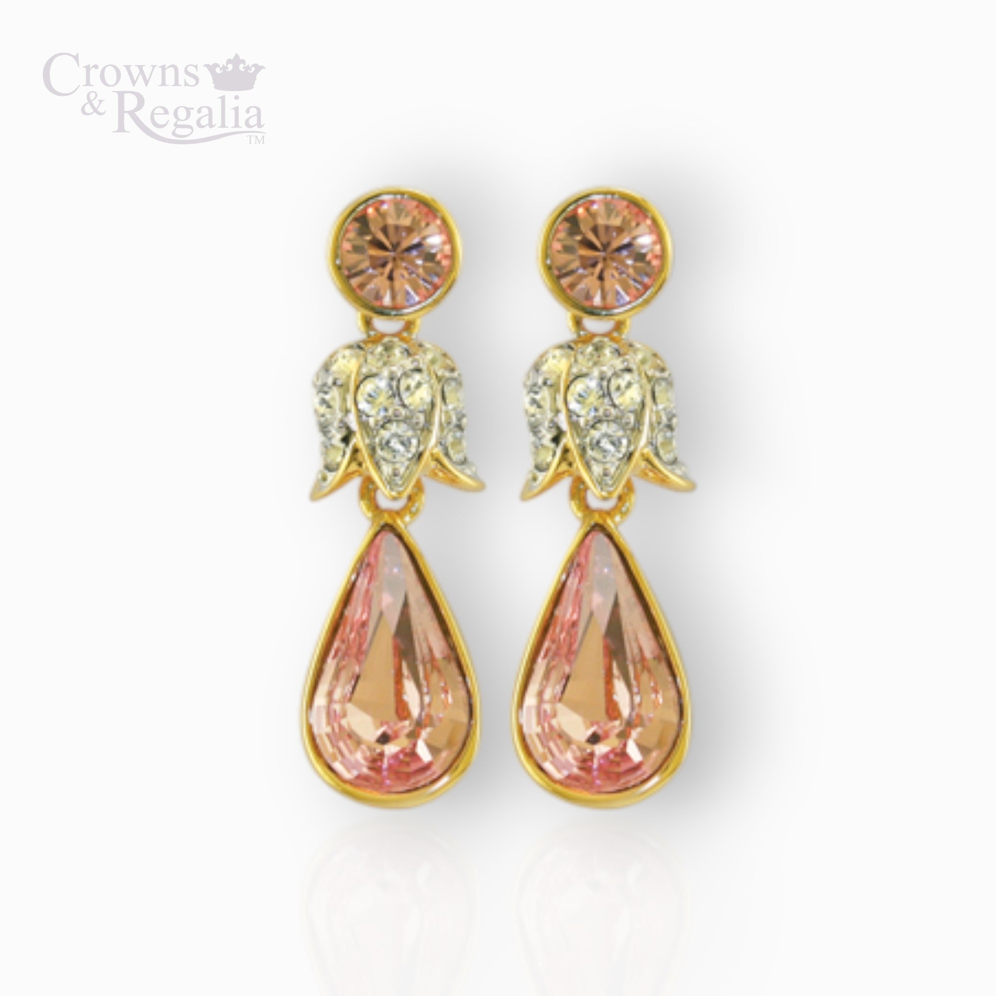 Inspired by a brooch with a central oval pink topaz with a scroll border of cushion-shaped diamonds suspending a detachable topaz and diamond drop mounted in silver and gold and made in about 1860. This was purchased by HRH The Princess of Wales, later Queen Mary, in 1901. This brooch passed to Princess Margaret and was sold at auction in 2006.