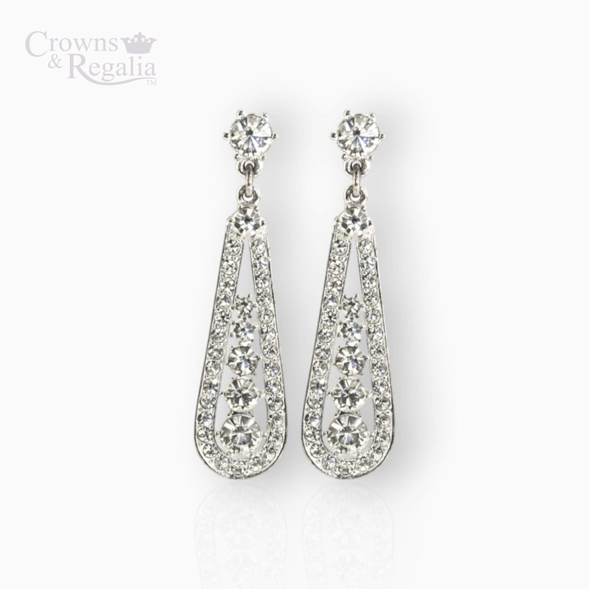 These earrings are inspired by the arches of the Crown worn by Queen Camilla at her Coronation on the 6th May 2023. The original crown, made by Garrard for Queen Mary in 1911 for her Coronation as consort to King George V, weighed 1LB. 7 ounces, and included over 2000 diamonds. Queen Mary presented it to the Crown Collection in 1914 with the intention of it being the future Queen consort's crown. It had been the tradition since Plantagenet times for a Queen not to attend the coronation of her successor. Queen Mary broke with this tradition in 1937, probably to show solidarity after the abdication of King Edward VIII, and wore the crown as a circlet without arches. For the Coronation of Queen Camilla there were only 4 arches instead of the original 8 and whereas Queen Mary's crown was originally set with the Koh-i-Noor in the centre front cross, Cullinan III in the top cross, and Cullinan IV in the front of the band, the Camilla crown replaced the Koh-i-noor with the Cullinan V diamond.