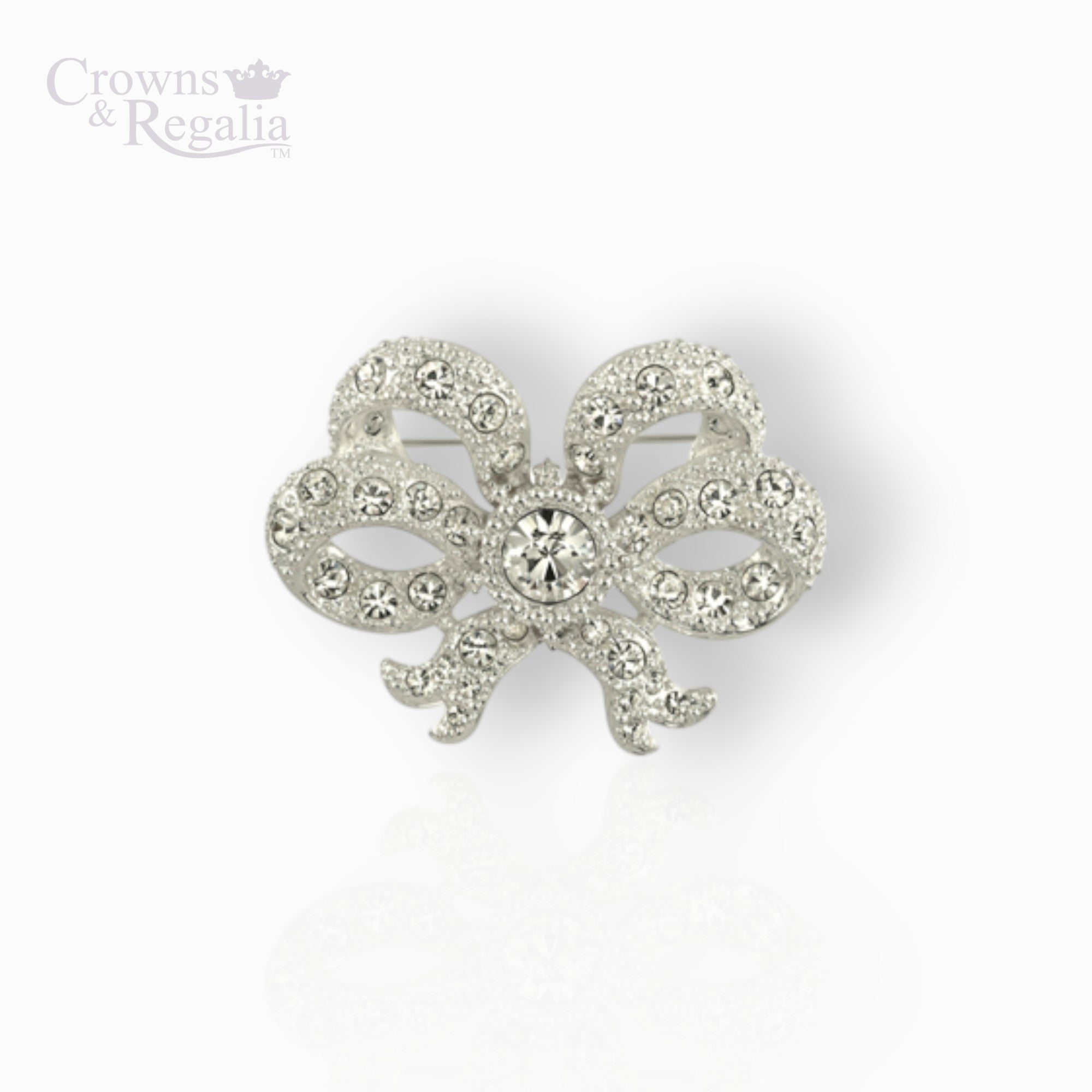 Bow brooches have been a popular design since the 1800's, and in May 1858 Garrard (the Crown Jewellers) made a set of three bow brooches, two large and one small, out of 506 diamonds supplied by Queen Victoria. There is no pictorial reference to prove that Queen Victoria wore them, however they were worn by both Queen Alexandra and Queen Mary at their Coronations. Queen Mary, in 1912 wore the brooch with the pear shaped Cullinan III suspended from the bottom of it. This is the smaller of our bow brooches. It is made from lead free pewter, silver-toned and adorned with bohemian crystals.
