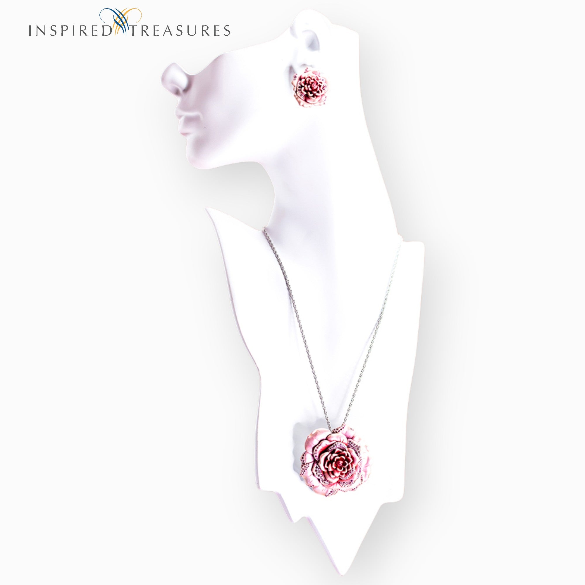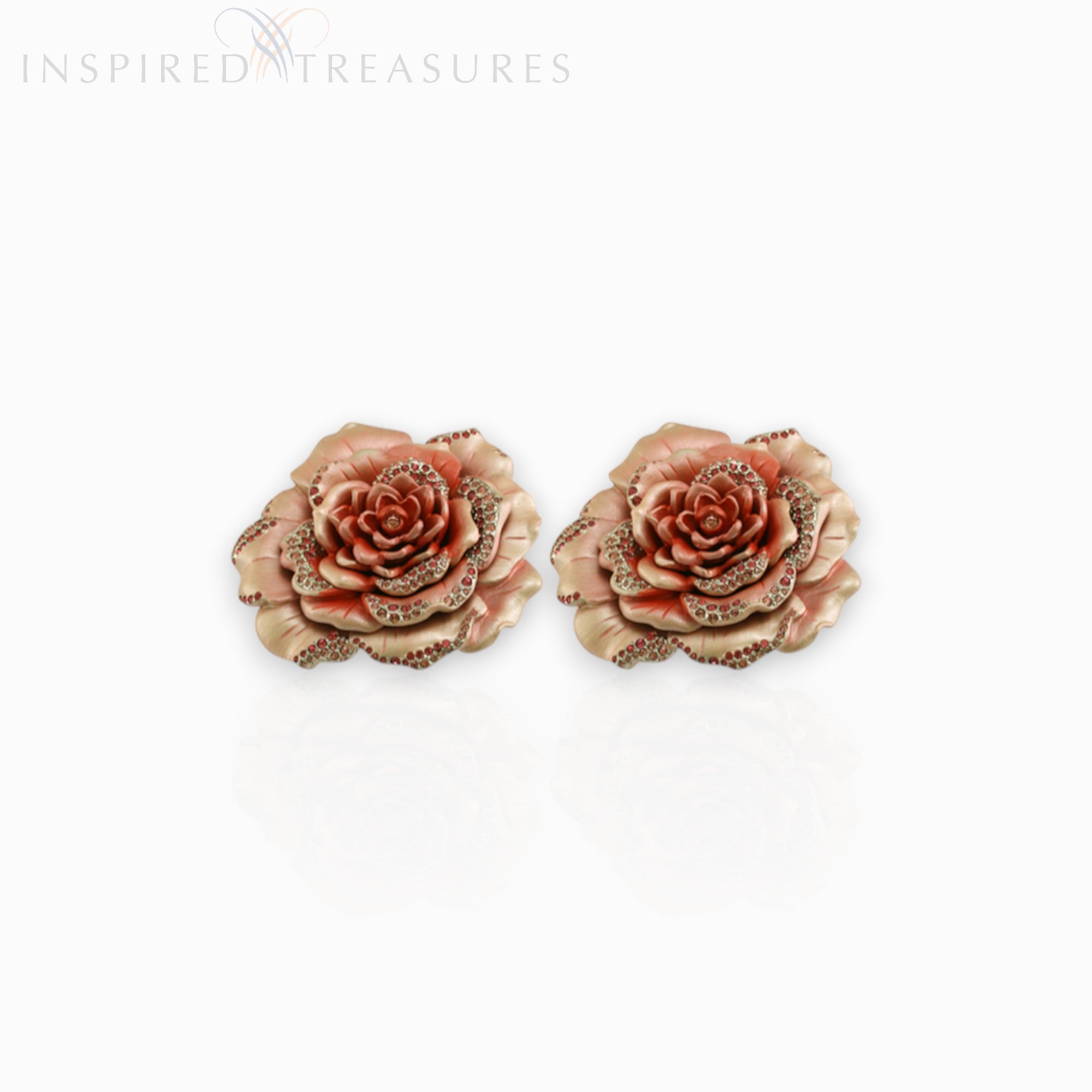 These earrings are based on the Rosa centifolia- This rose is a complex hybrid developed by Dutch breeders sometime before the 19th century. It is particularly used in the perfume trade, as it especially valued for its singular fragrance which is sweet and clean, with high notes of honey. This rose is inspired by artwork by Pierre-Joseph Redouté (1759-1840). The floral works of Redouté have a great reputation for their beauty and accuracy. He began his career as a scene painter in Paris but his real love was flower painting. He was found painting in the Jardin du Roi by the wealthy botanist Charles Louis L’Hértier de Brutelle who became his patron. Redouté was introduced to the royal household and was appointed Draughtsman to the Cabinet of Marie-Antoinette. After the revolution Joséphine Bonaparte became his generous patron. She spent untold sums on the publications recording her rare and exotic plants which contributed directly to Redouté’s most magnificent volumes Les Liliacées (1802-16) and Les Roses (1817-24).