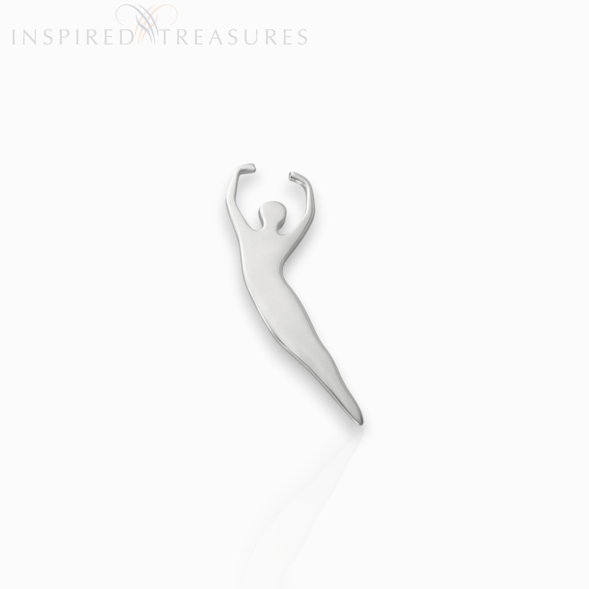 These elegant sterling silver earrings are inspired by the 5th pas de poisson, a graceful dance move performed by male ballet dancers. The design captures the beauty and movement of the dance, making it a perfect accessory for lovers of ballet.