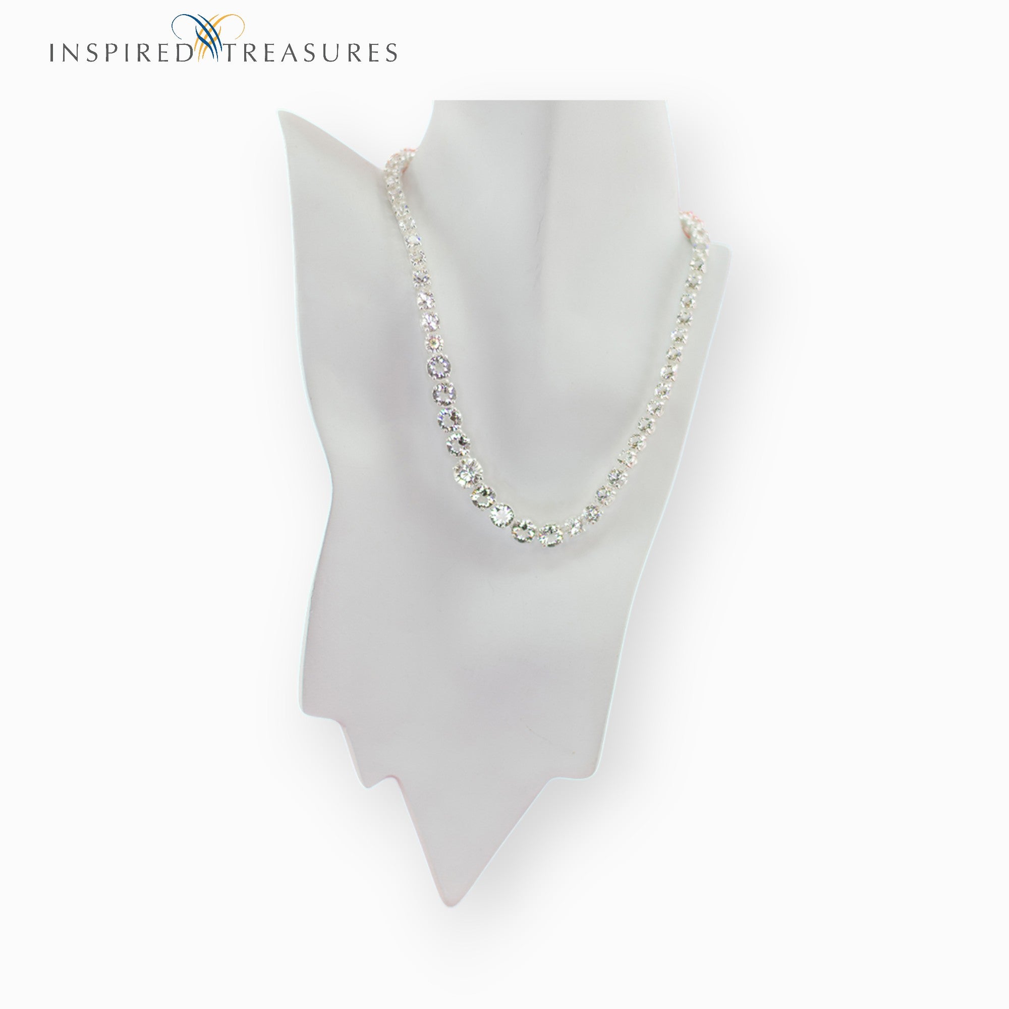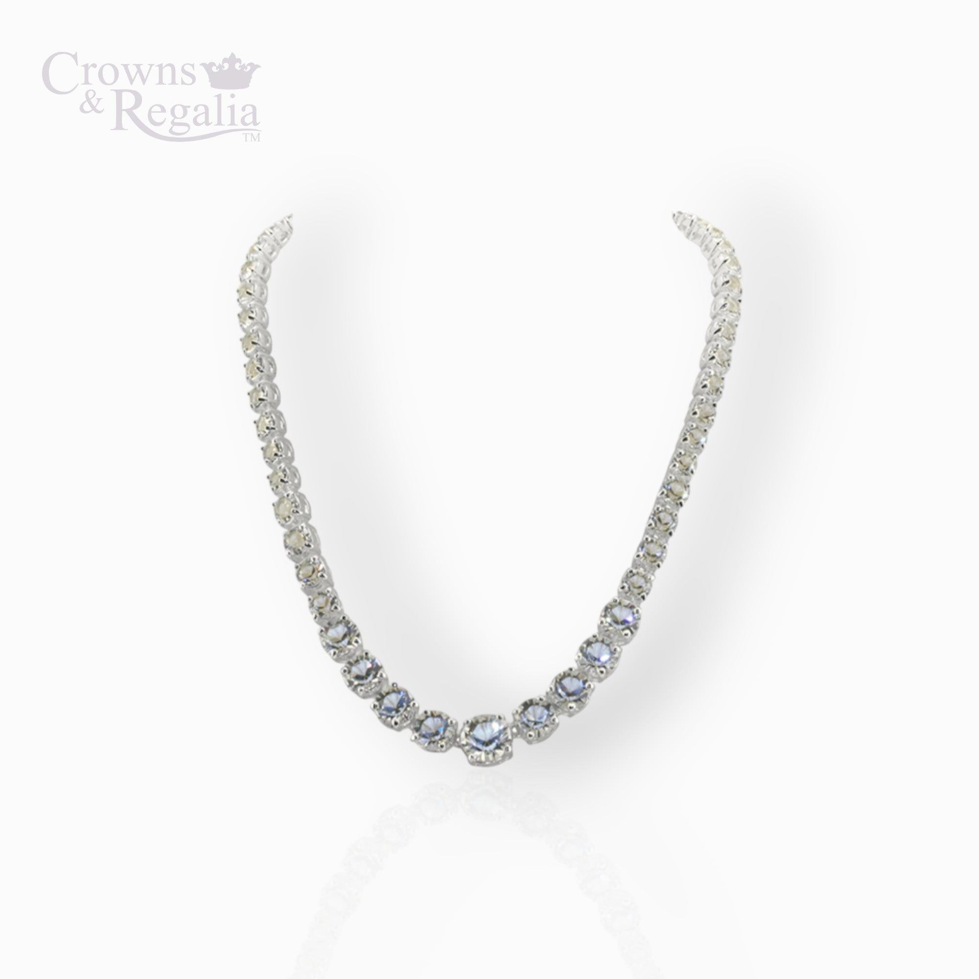 This necklace has been inspired by a present from King George VI to Queen Elizabeth to commemorate their Coronation in May 1937. Made by Garrard the Crown Jeweller, the original comprises of forty brilliant cut diamonds. Queen Elizabeth (later the Queen Mother) wore this necklace along with the Queen Victoria Collet Necklace on her Coronation Day and subsequently throughout her long life. This necklace features a vast number of high quality bohemian crystals and has a secure box clasp closure.