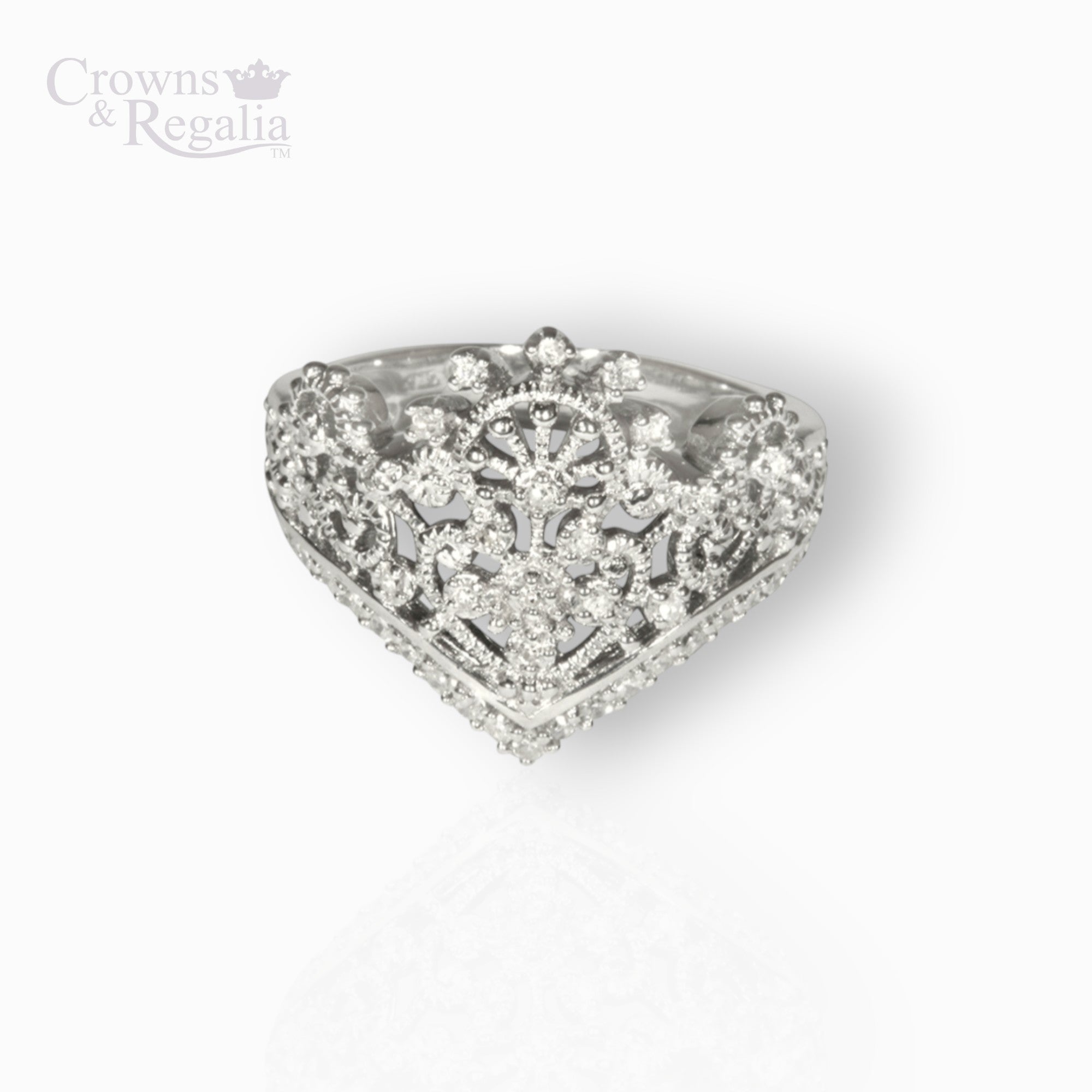 Queen Elizabeth II was said to have had the largest and most valuable collection of tiaras in the world. She was often seen wearing them on state occasions and her collection of tiaras is considered to be priceless. This Tiara ring has been inspired by many of these tiaras taking the best elements from each to create a majestic Princess ring.