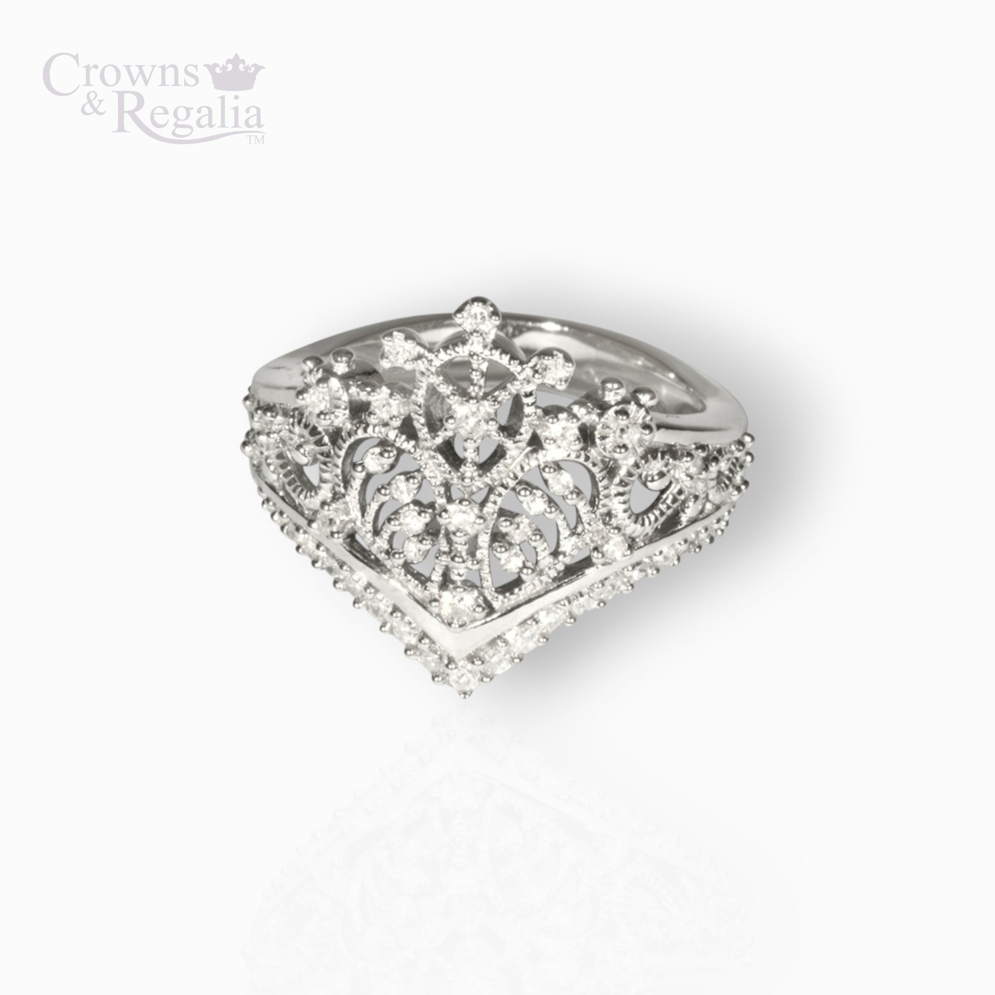 Queen Elizabeth II was said to have had the largest and most valuable collection of tiaras in the world. She was often seen wearing them on state occasions and her collection of tiaras is considered to be priceless. This Tiara ring has been inspired by many of these tiaras taking the best elements from each to create a majestic Princess ring.